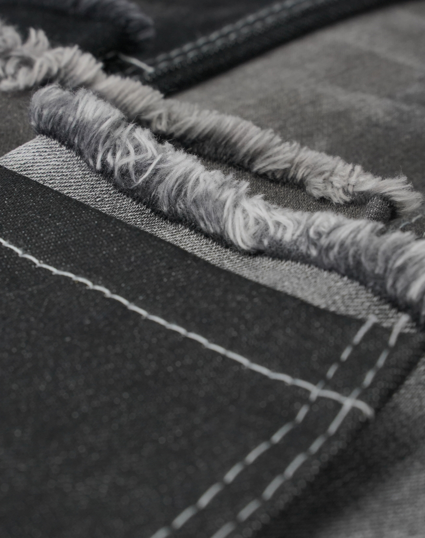 弹性较好,手感比牛仔柔软,穿着舒适,这个是针织牛仔的优点。由于是针织纬编,所以采用不同的功能纤维是针织牛仔的一大优势特点。